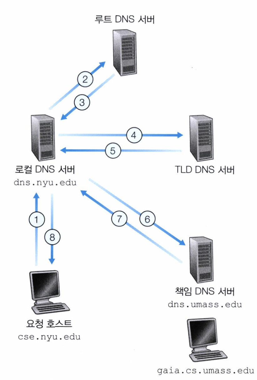 - 루트 DNS 서버는 다시 TLD 서버에 질의한다.
