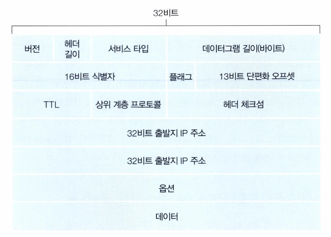 - 출발지/목적지 IP 주소: 데이터그램을 보낸 호스트와 도착할 호스트의 주소